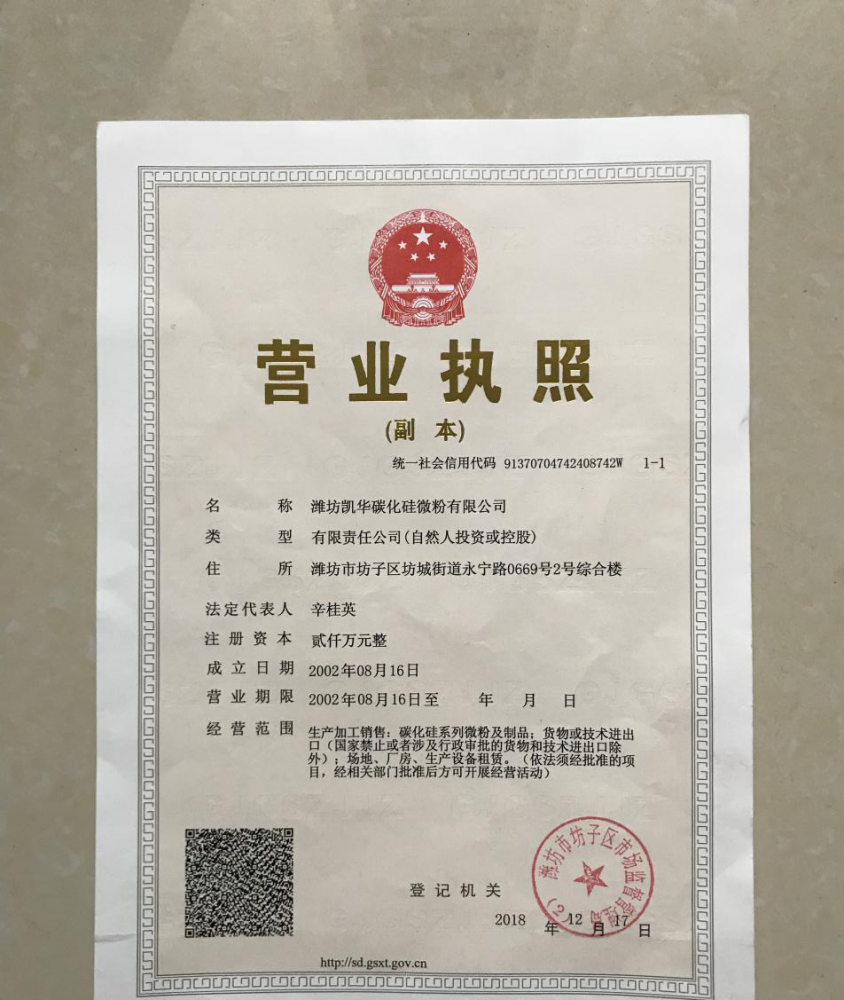 濰坊凱華碳化硅微粉有限公司成立于2002年,國家高新技術(shù)企業(yè),公司占地40畝,標準廠房19000平方,辦公樓、研發(fā)處2000平方,年生產(chǎn)能力3萬噸。一直從事陶瓷級微粉的生產(chǎn)銷售,所生產(chǎn)的超細碳化硅微粉具有純度高、粒形好、穩(wěn)定性強等特點,主要用于反應(yīng)燒結(jié)、無壓燒結(jié)、硅碳棒新工藝、重結(jié)晶燒結(jié)、蜂窩陶瓷、機車制動裝置、研磨拋光、金屬防腐表面噴涂、納米隔熱保溫材料等領(lǐng)域。標準產(chǎn)品有:F240、F1200、W40、W28、W20、W14、W10、W7、W5、W3.5、 W2.5、W2、W1.5、W0.5、5S、D3E、100F、RS07、RS100及整形高密度系列綠碳化硅微粉......